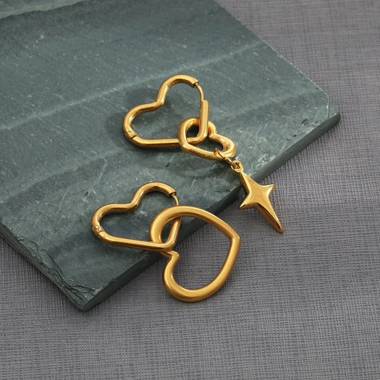 Heart-Star Mismatched Drop Earrings- Stainless Steel