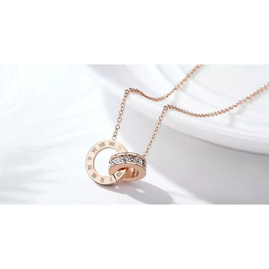 Interlocking Roman Numeral Ring - Rose Gold Necklace