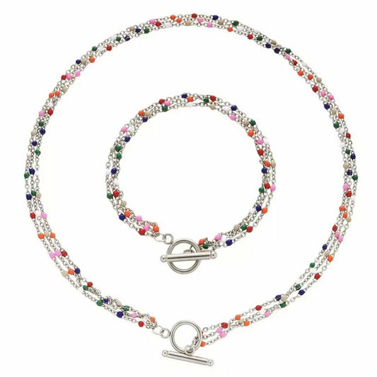 Paper clip Choker to Chain Necklace w/ Bracelet Set