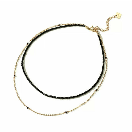 Crystal Choker w/ Cross Pendant Layered Gold Necklace