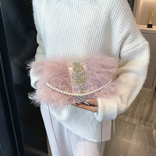 Viola Feather Gatsby Clutch Crossbody Bag