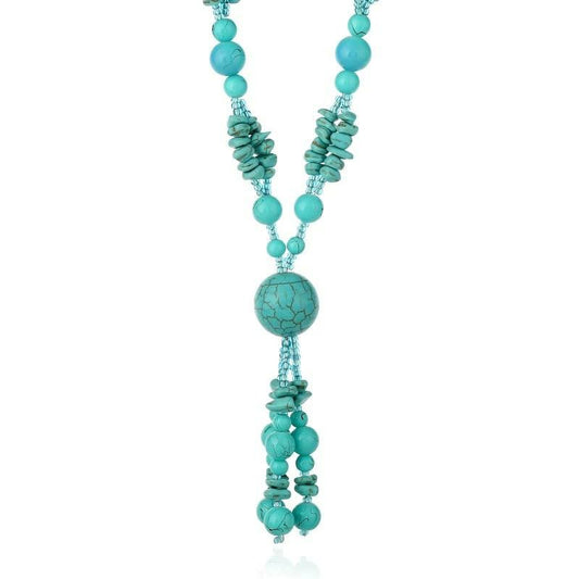 Penelope Turquoise Beaded Long Tassel Necklace