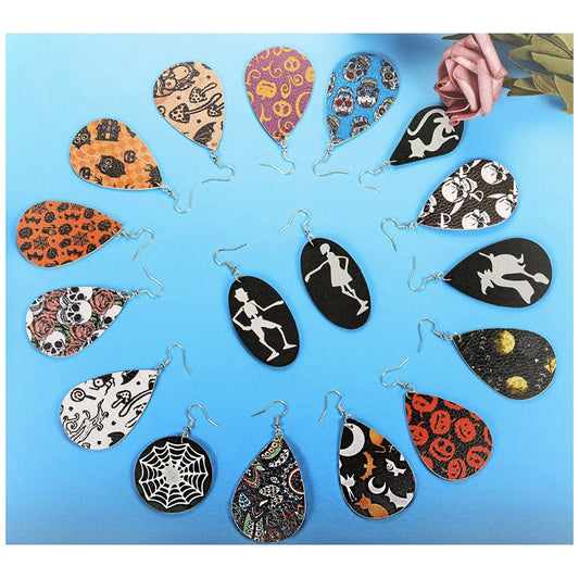 Spooky Fun Halloween Leather Earrings - Pumpkin, Cat, Skeleton & more