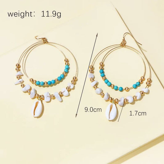 Kezzi Bohemian Turquoise Shell Drop Earrings