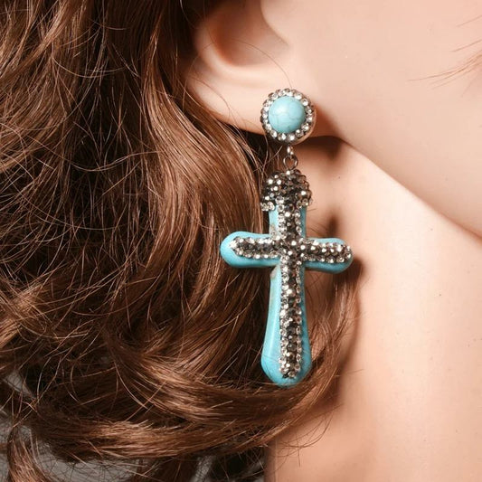 Roxxi Southwest Turquoise Cross Drop Earrings