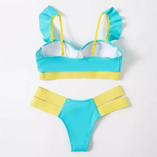 Kulai Ruffle Thong Bikini Swimsuit